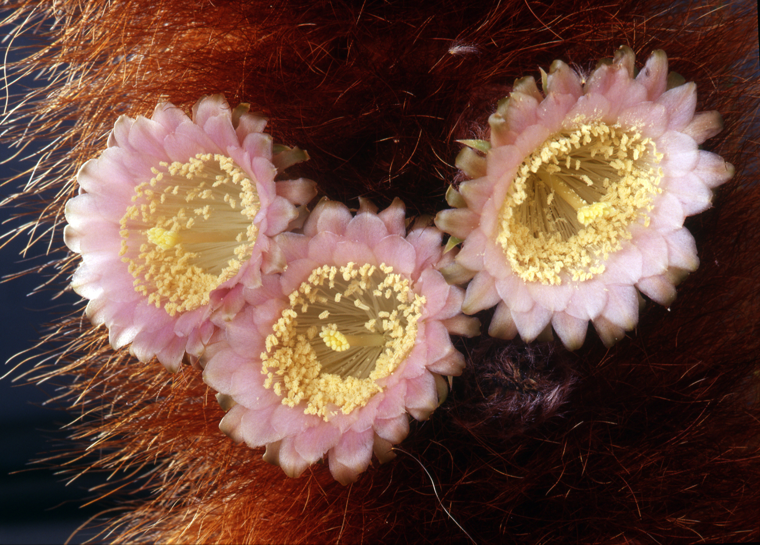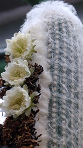 Jedes Jahr im Herbst fielen schön gewachsene Triebe des T. senilis um. Die in der warmen Gewächshausluft zu üppig gewachsenen Triebe entwickelten ein zu schwach ausgebildetes Leitbündel. Gleiches passierte mit einigen Cleistocactus strausii, dessen Säulen extrem bis zu 12 cm dick und bis zu 3m hoch wuchsen. Auch da lag im Herbst manchmal einer quer im Auspflanzbeet, sichtlich ein zu zart ausgebildetes Leitbündel.