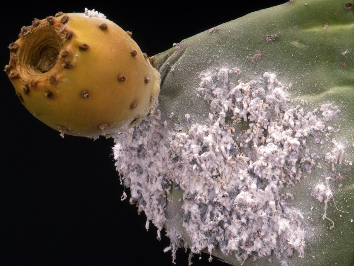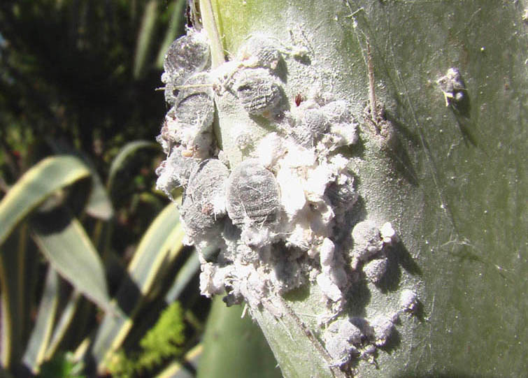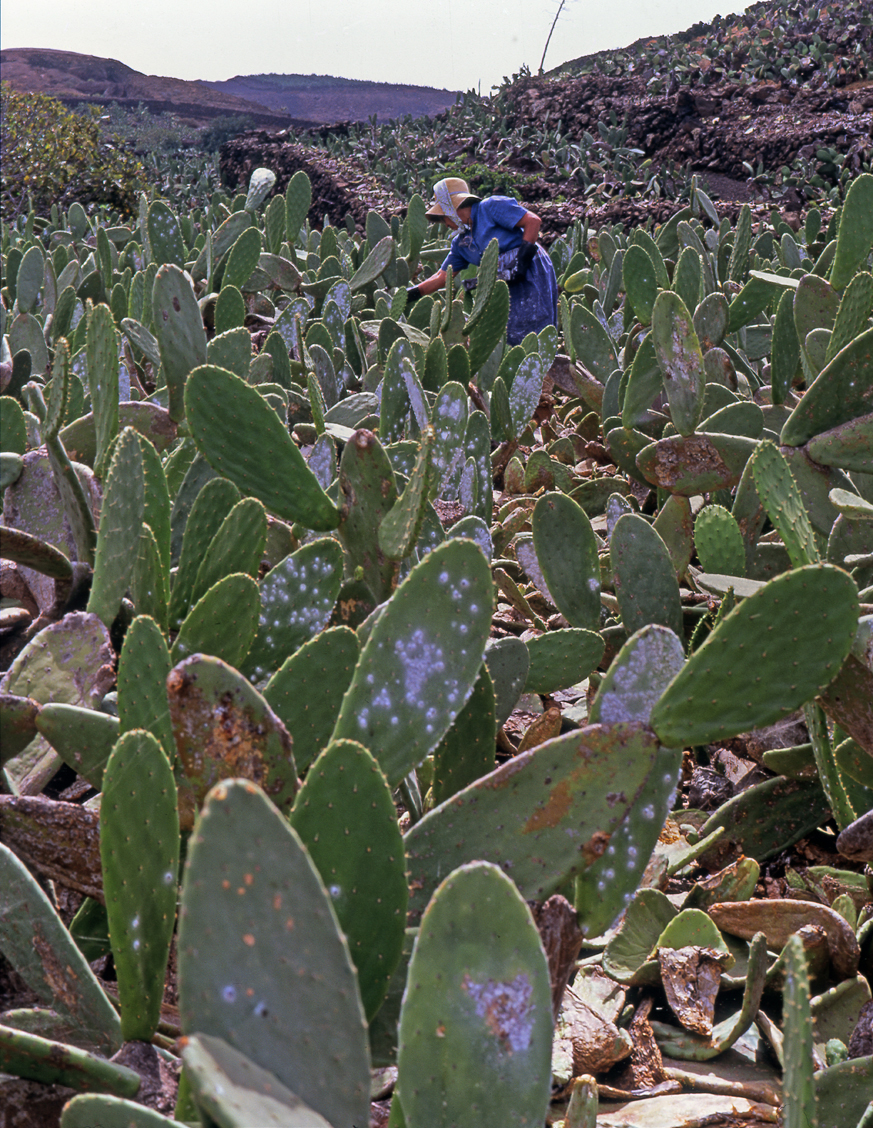 ...sollte jeder Kenntnis davon haben, um nicht befallene Kakteen zu erwerben. Die Schmier- oder Wolllaus liebt Kakteen und ist zugleich ihr größter Feind. Schon vor langer Zeit färbte man mit dem Farbstoff Karmin aus dem Blut der weiblichen Cochenillelaus die Kardinalsgewänder und Lippenstifte. Auch heute soll dies noch der Fall sein. Um sie zu züchten gibt es auf Lanzarote Opuntienfelder, wo die Läuse in Kulturen auf Blättern der Opuntia ficus-indica angesetzt werden.