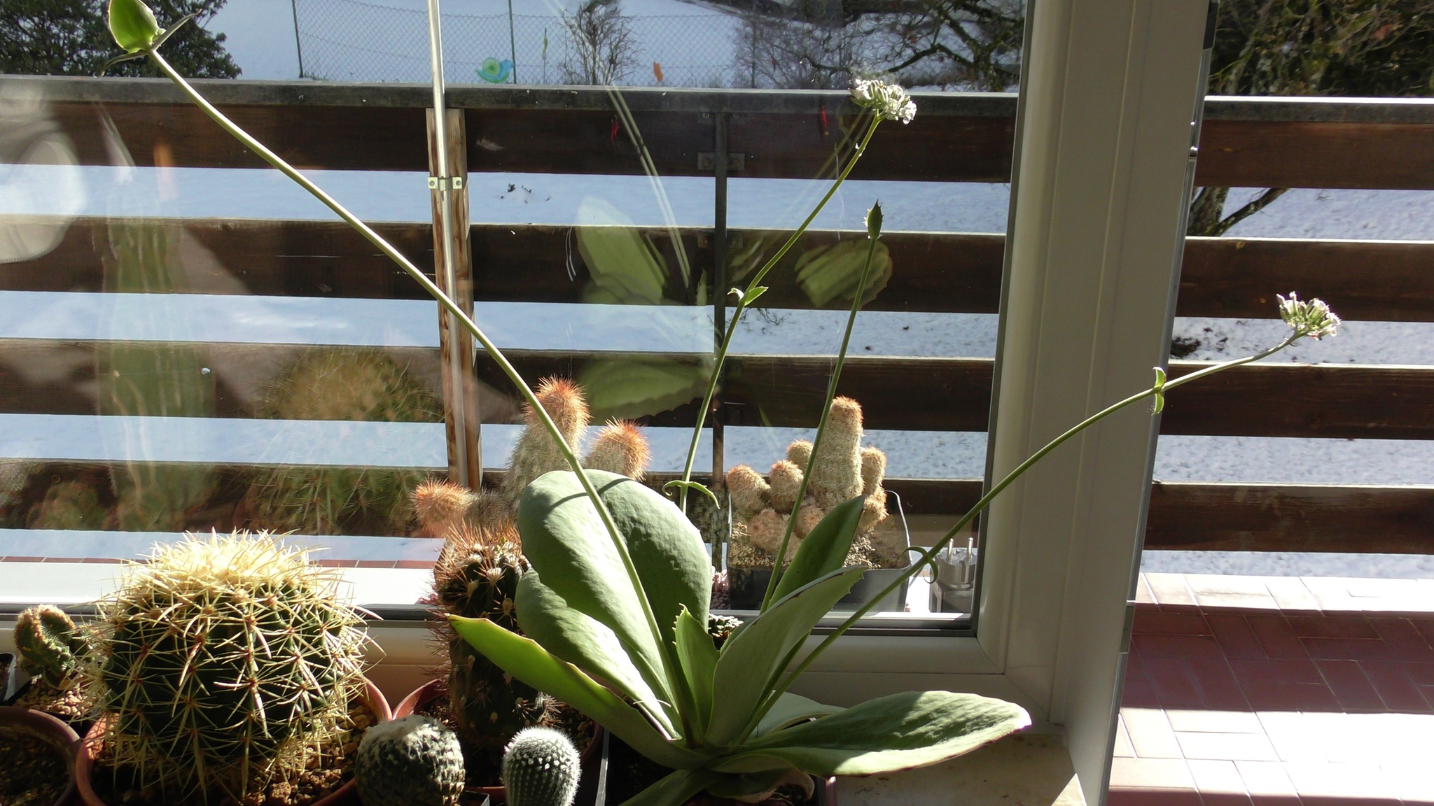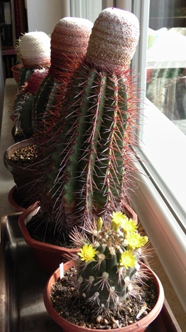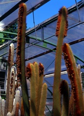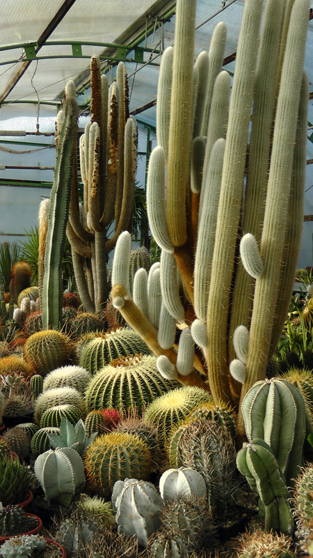 Jedes Jahr im Herbst fielen schön gewachsene Triebe des T. senilis um. Die in der warmen Gewächshausluft zu üppig gewachsenen Triebe entwickelten ein zu schwach ausgebildetes Leitbündel. Gleiches passierte mit einigen Cleistocactus strausii, dessen Säulen extrem bis zu 12 cm dick und bis zu 3m hoch wuchsen. Auch da lag im Herbst manchmal einer quer im Auspflanzbeet, sichtlich ein zu zart ausgebildetes Leitbündel.