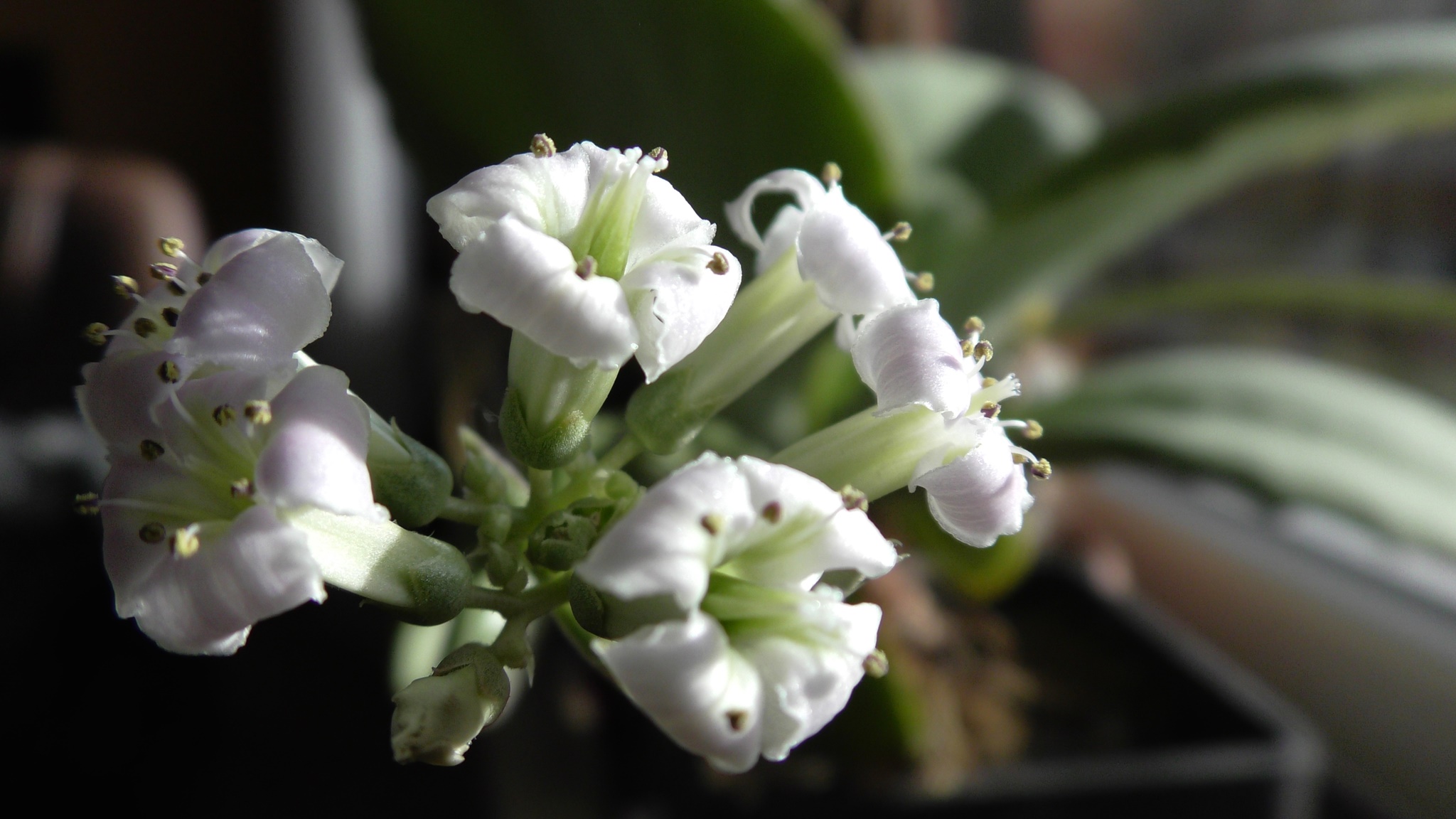 Kalanchoe synsapala bildet Ausläufer in Form von bis zu 40cm langen dünnen Stiele, an deren Spitzen sich die kleinen Blüten zeigen oder sich auch ein Trieb als Ableger entwickelt.
